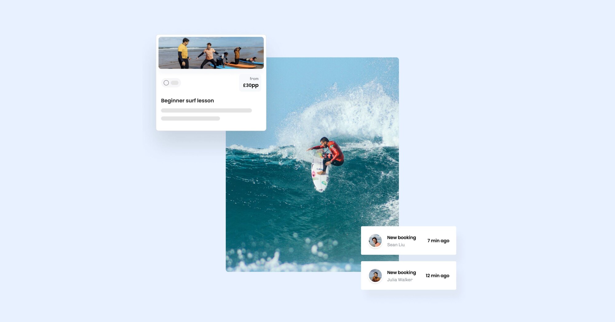 Online booking system for surf schools